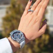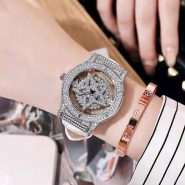 ساعت مچی عقربه ای دایموند ستاره ای Diamond Star watch با بند طرح چرم سفید