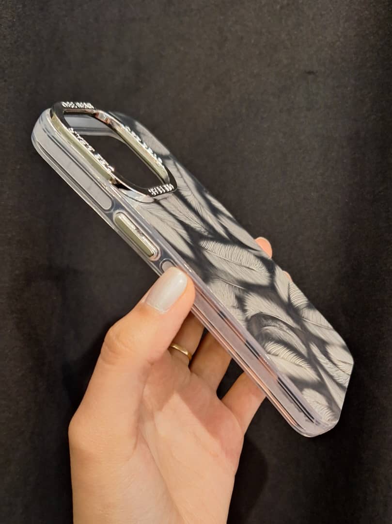 کاور آیفون 11 پرو با طرح پر نقره ای، انتخابی ایدهآل برای علاقهمندان به طرحهای فانتزی است. این کاور، ترکیبی هنرمندانه از محافظت و استایل را برای گوشی شما فراهم میکند. این کاور طرح ظاهری فانتزی دارد که آن را از سایر قابها متمایز میکند و جذابیت بصری خاصی به گوشی شما میدهد.