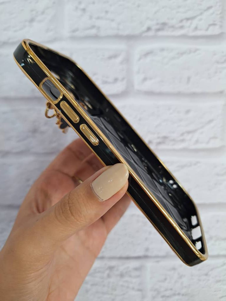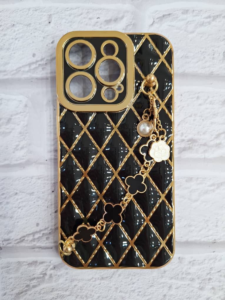 کاور گوشی موبایل آیفون 14 پرومکس iPhone14Promax طرح ونکلیف Van Cleef بالشتی هولدر دستبندیiPhone 14 Promax Black Van Cleef Pearl Holder Band