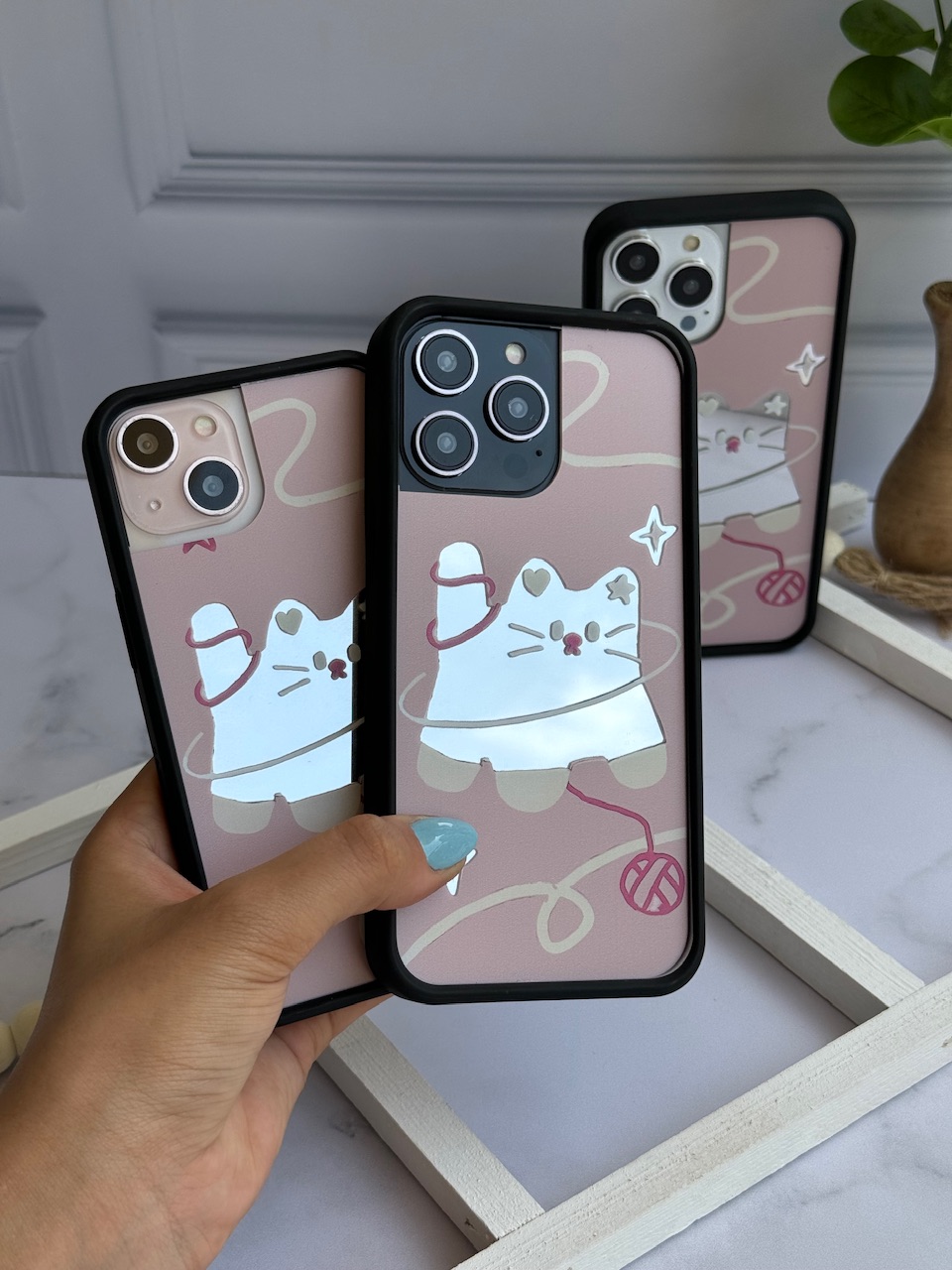 کاور گوشی موبایل آیفون 14 پرومکس iPhone14Promax طرح گربه کاموایی آینه ایiPhone 14 Promax Yarn Cat Mirror