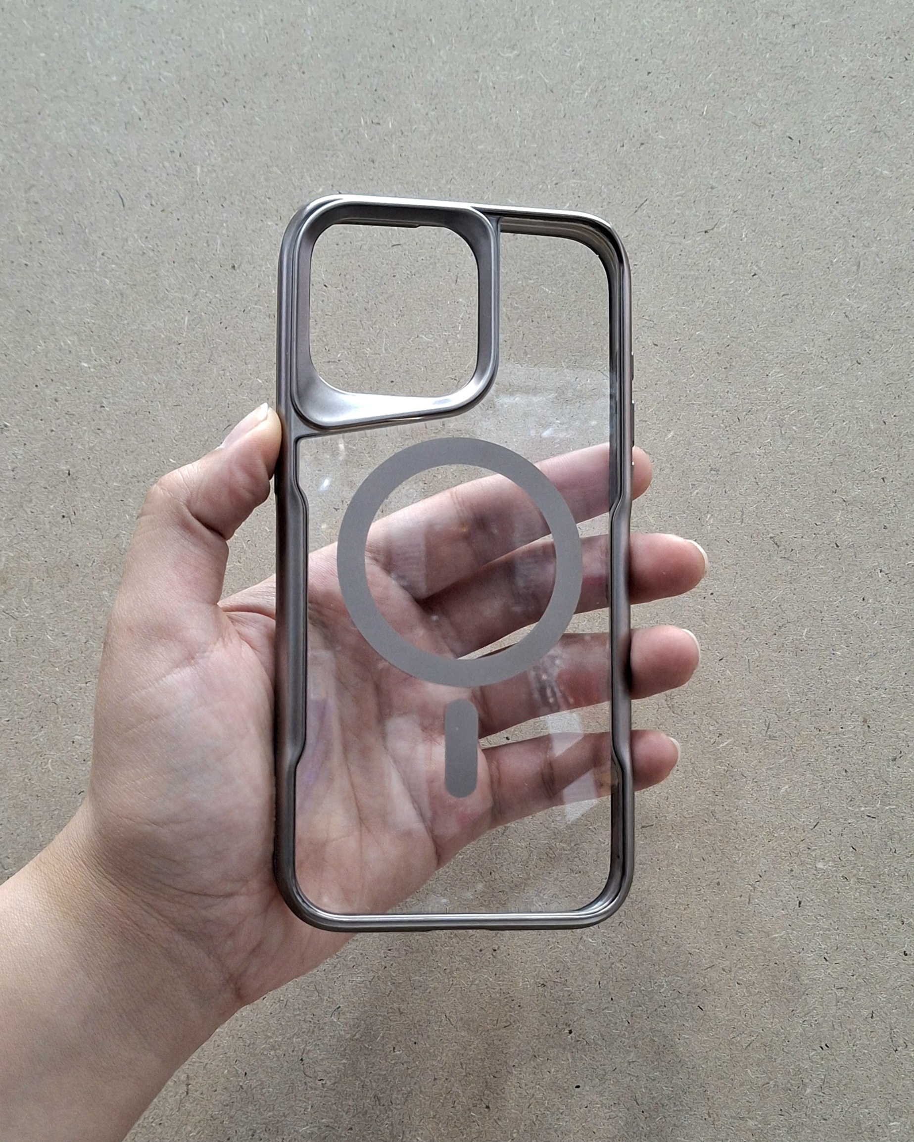 کاور آیفون 15 پرومکس با طرح شفاف دور رنگی New Zone مگ سیف Mag Safe رنگ تیتانیوم بژ، انتخابی ایده‌آل برای علاقه‌مندان به طرح های ساده و کلاسیک است. این کاور، ترکیبی هنرمندانه از محافظت و استایل را برای گوشی شما فراهم می‌کند. طرح آن ظاهری شیک و زیبا به گوشی شما می‌دهد.