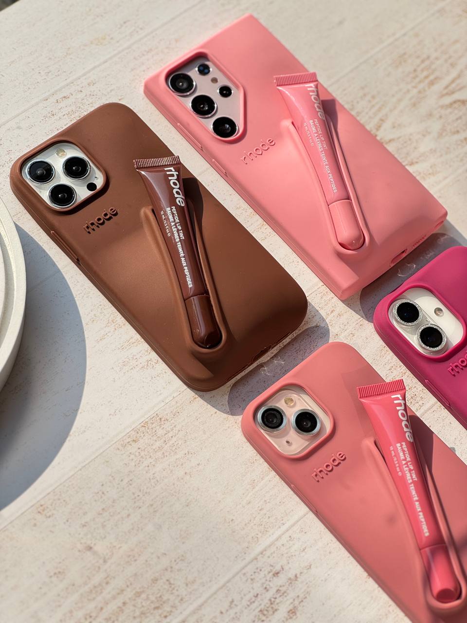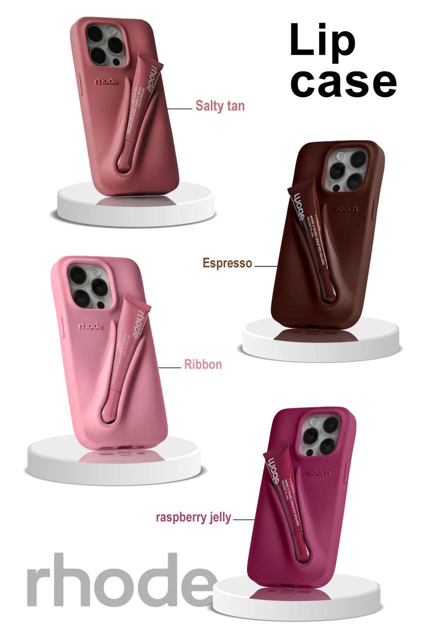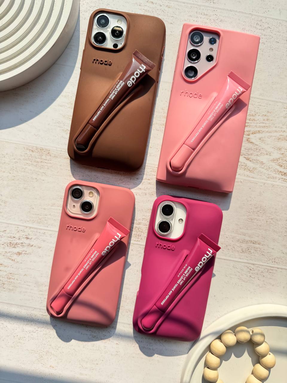 کاور گوشی موبایل سامسونگ اس 23 اولترا Samsung-S23Ultra طرح رود rhode همراه با لیپ گلاس Lip Gloss رژلب رنگ سالتی تن Salty TanSamsung S23 Ultra rhode Lip Gloss Case Salty Tan